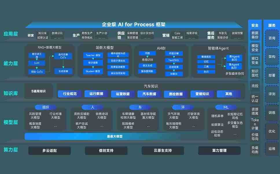 端到端的一站式AI工作空间深度融合了从企业战略规划到日常经营的全流程业务板块,,定向解决车企内部领域多、、、部门多、、链条长、、场景碎片化等难题,,支持车企快速构建以AI为核心的生产力写作体系,,,实现任务执行与AI能力的无缝集成与交互